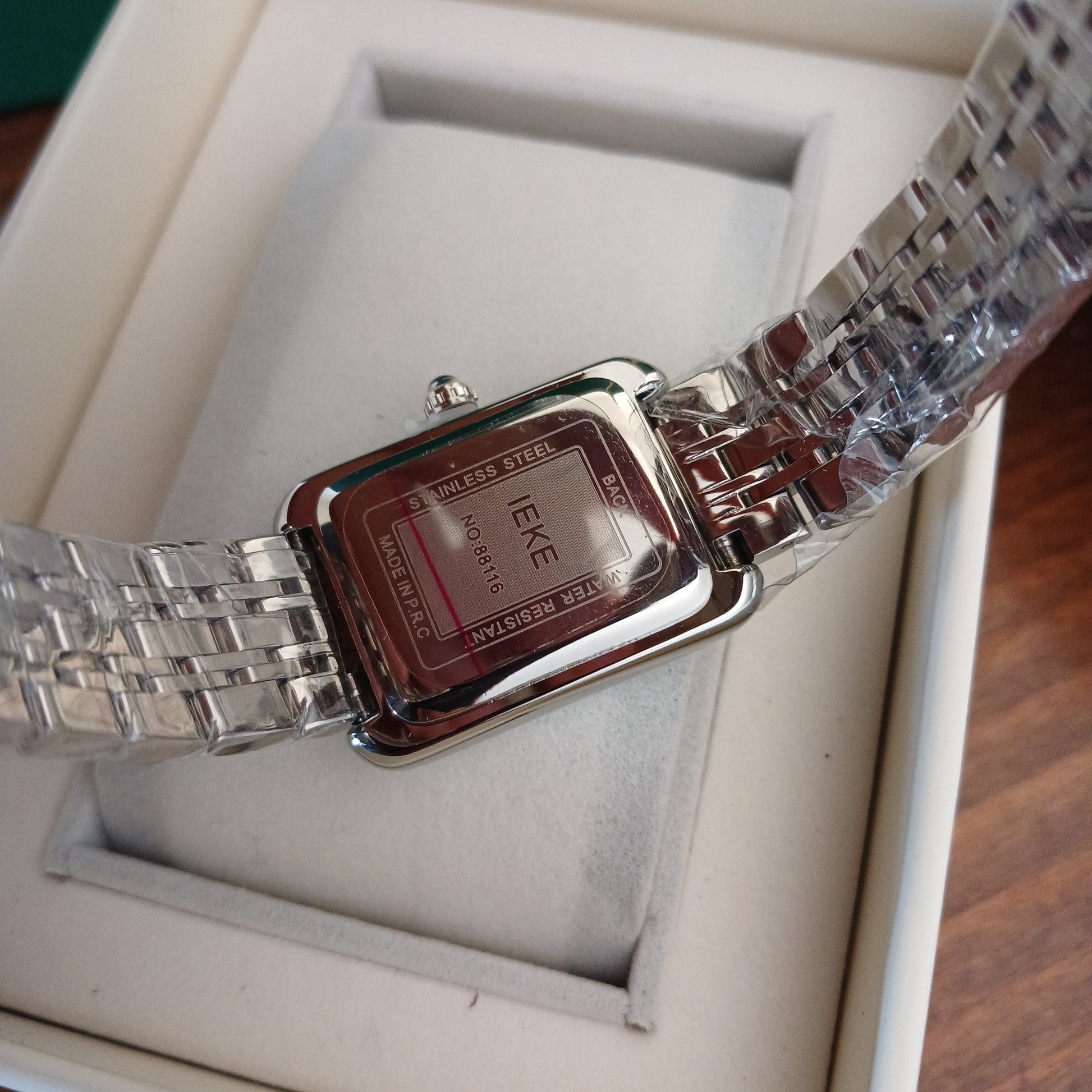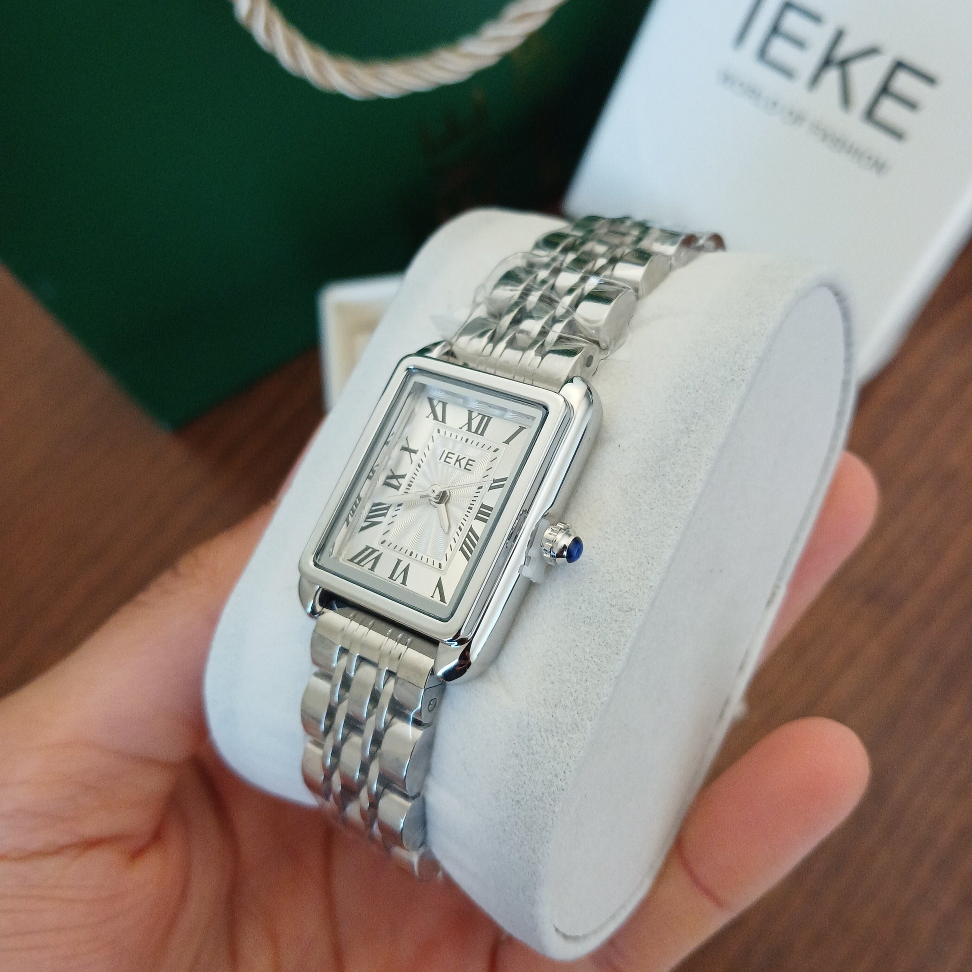 Cette montre IEKE combine l'élégance et la simplicité. Dotée d'un boitier rectangulaire de 22x30mm avec un cadran blanc et un bracelet en argenté.