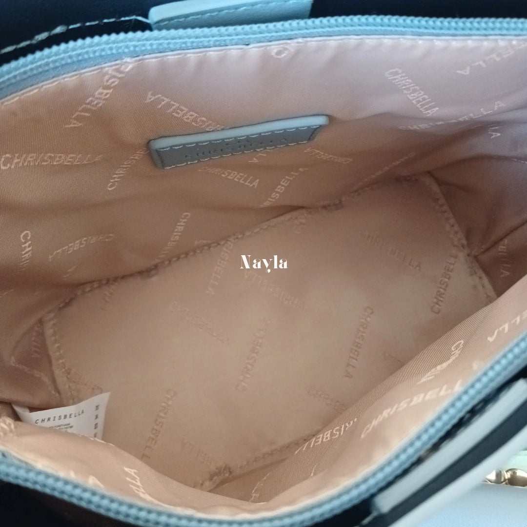Élégance et praticité s’unissent dans ce sac à main Chrisbella. Doté de trois compartiments qui permettent d’organiser vos essentiels quotidiens avec toute simplicité. Il peut se porter à la main ou en bandoulière pour plus de confort.