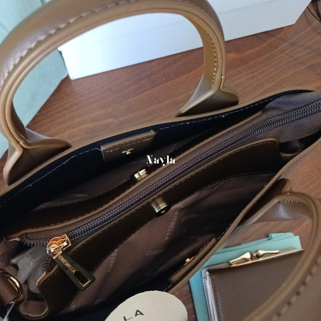 Élégance et praticité s’unissent dans ce sac à main Chrisbella. Doté de trois compartiments qui permettent d’organiser vos essentiels quotidiens avec toute simplicité. Il peut se porter à la main ou en bandoulière pour plus de confort.